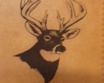 Handcrafted Laser Engraved Buck and Doe All Leather Money Clip Wallet