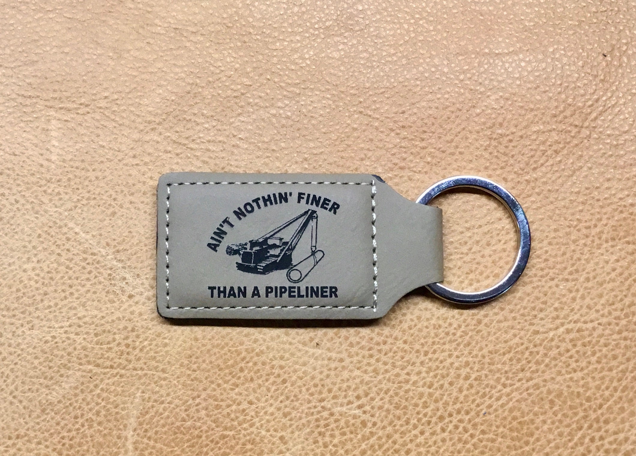 This listing is for a single beautiful leather keychain that has been laser engraved with an ain’t nothing finer than a pipeliner design.